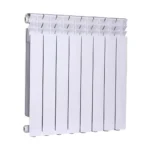 Radiador fabricado en aluminio inyectado. Modelo NE. Los radiadores se suministran montados en baterias de 3 a 12 elementos, pintados por anaforesis y posteriormente recubiertos, con polvo epoxi poliester. Tanto al pintura anaforesica como la epoxi son de color blanco. Posteriormente son embalados con film retráctil y protegidos por cantoneras de poliestireno espandido.