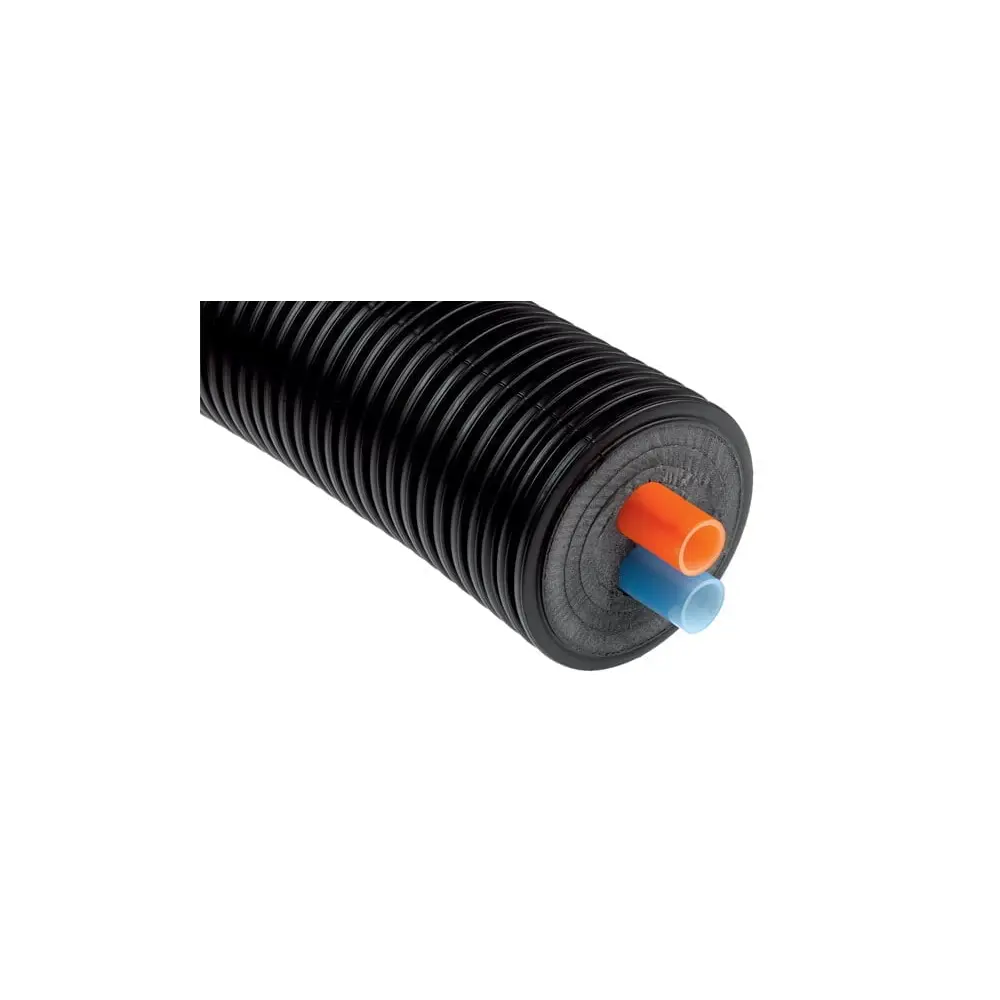 Sistema de tubería preaislada, muy flexible, que incluye dos tubos caloportadores (de ida y vuelta) en la misma manguera exterior. Se utiliza principalmente para el transporte de agua de calefacción, de agua caliente sanitaria o de otros líquidos en redes enterradas.